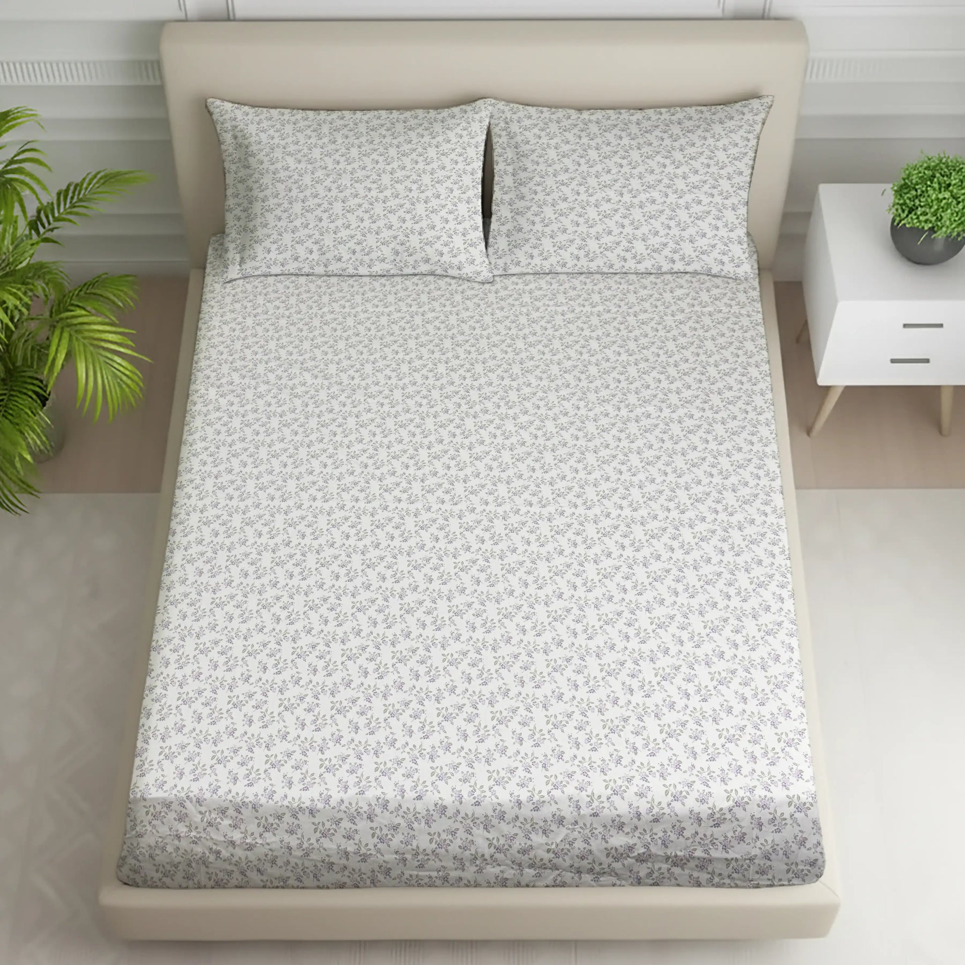 Delicate Grey & White Mini Floral Bed Sheet Set - Ditsy Print Design