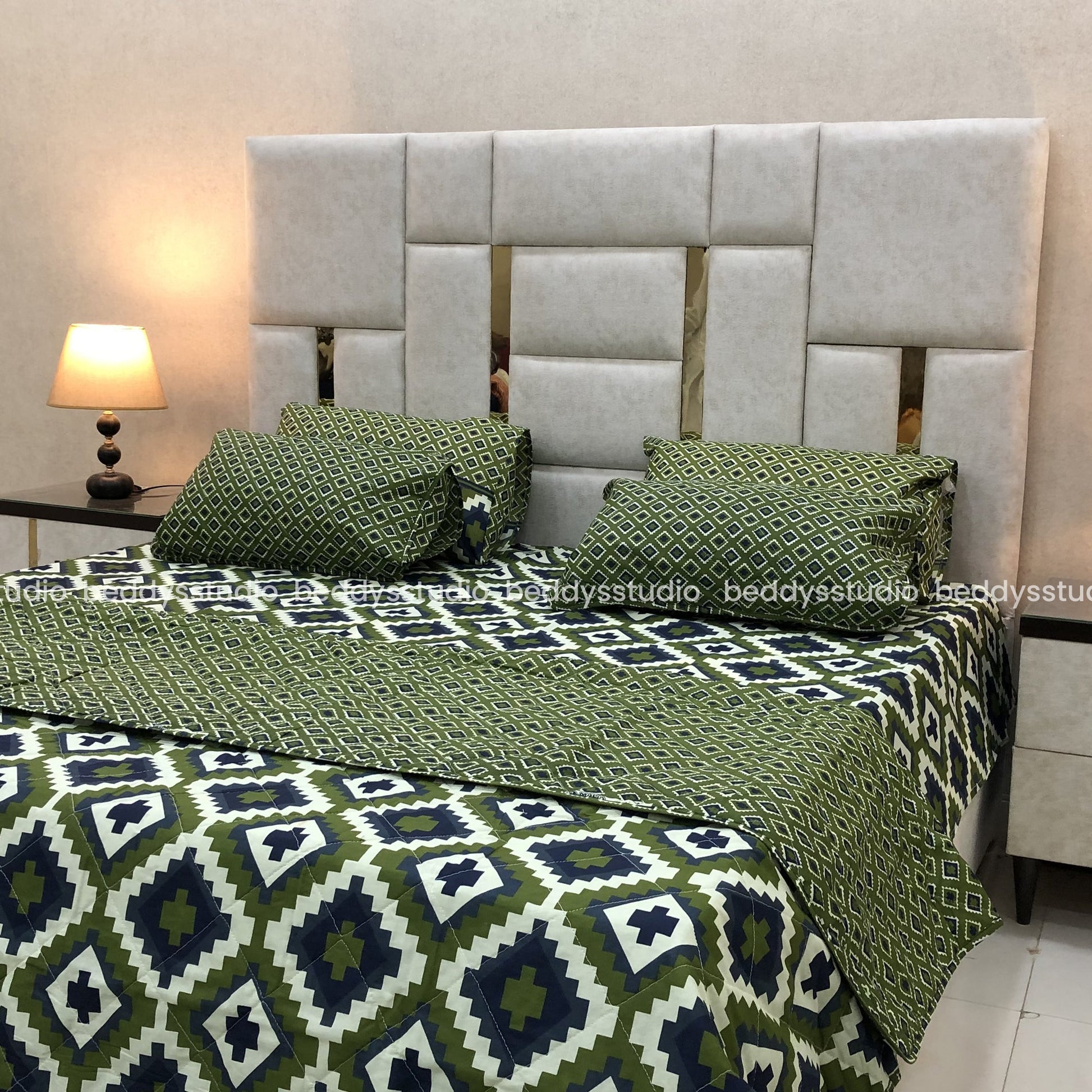 Discover the ideal quilted comforter set to ensure year-round coziness and comfort at Aarbee Store's Studio! Crafted from soft fabric with a versatile design, these sets are perfect for any bedroom. Made from 100% Salonika cotton and filled with 120 GSM lightweight polyester, they offer the perfect balance of warmth and breathability. With a wide range of colors and patterns available, you'll find the perfect match for your décor, whether you prefer solid colors or vibrant prints. Choose Aarbee Store's Studio for your go-to comforter set that guarantees comfort and style.